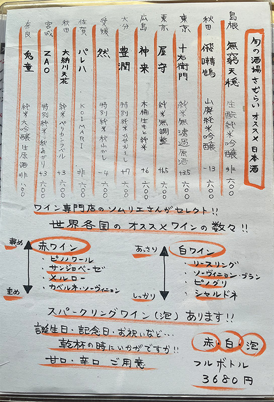 季節に合った地酒、焼酎も店主自ら買い付け!